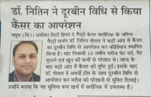 Dr. Nitin Goyal, senior gastro surgeon of The Gastro Care Clinic, Ashoka City, has set a record by operating cancer in the large intestine with laparoscopic surgery....