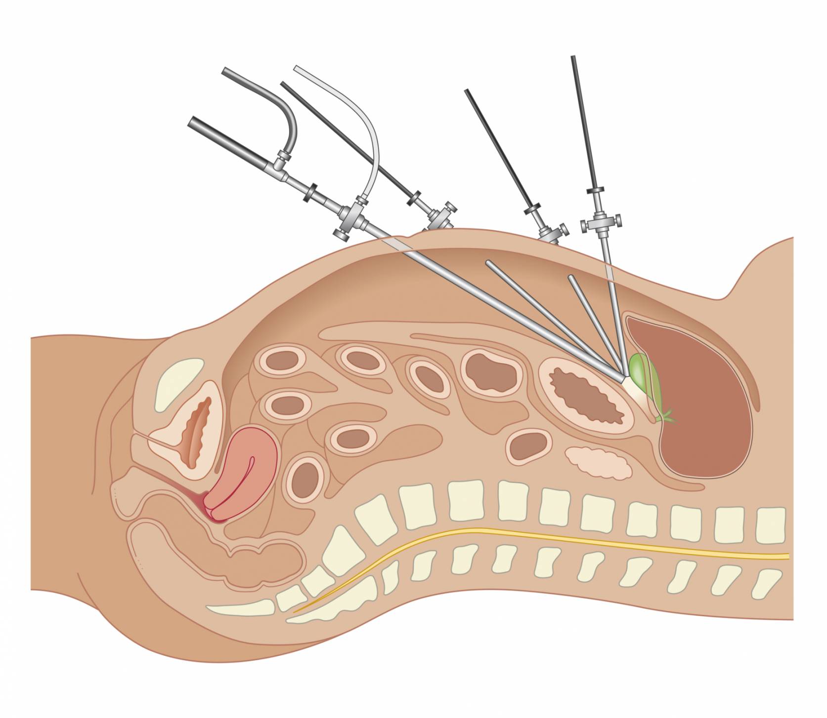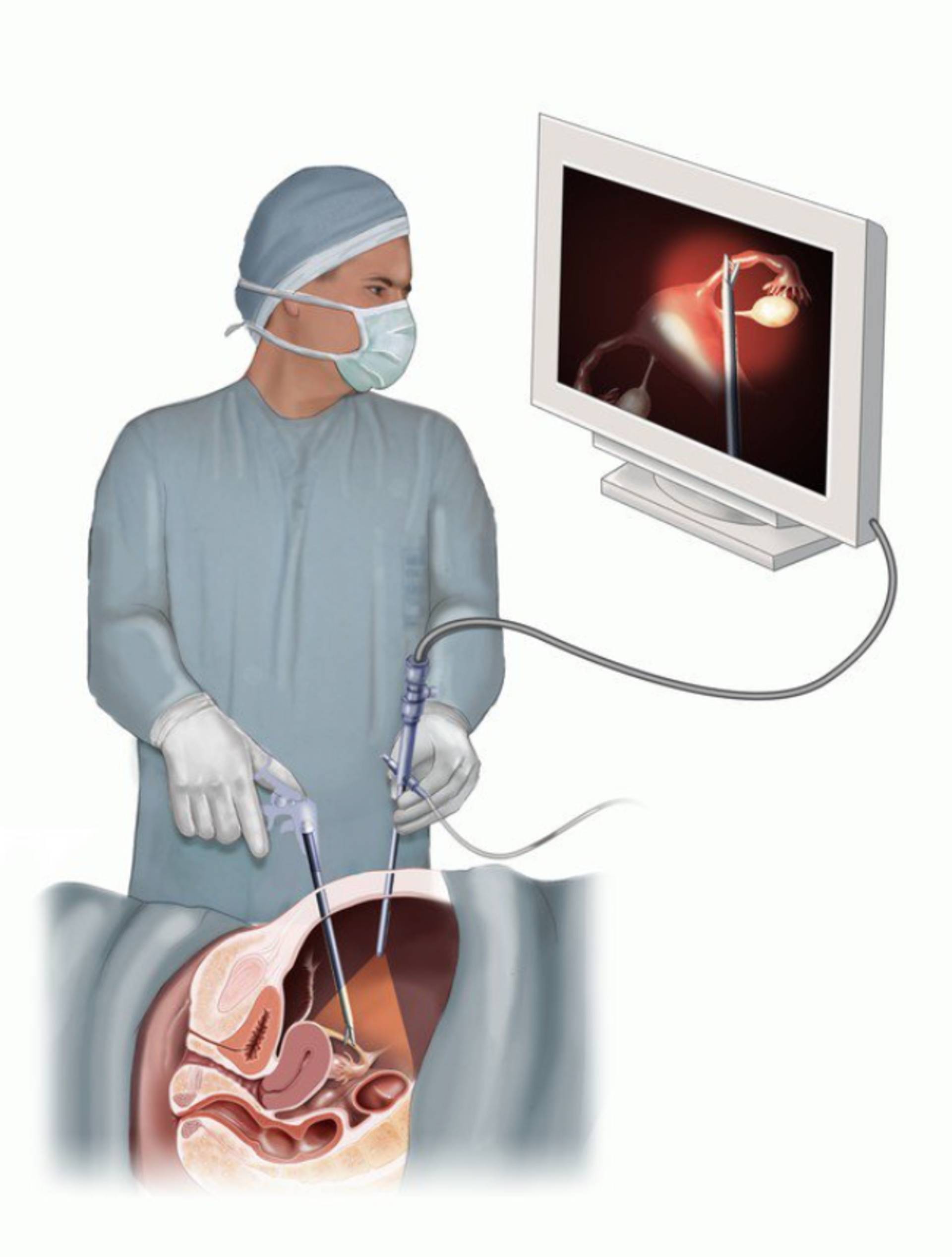 Three or more small (5-10 mm) incisions are made in the abdomen to allow access ports to be inserted. The laparoscope and surgical instruments are inserted through these ports. The surgeon then uses the laparoscope, which transmits a picture of the abdominal organs on a video monitor, allowing the operation to be performed.